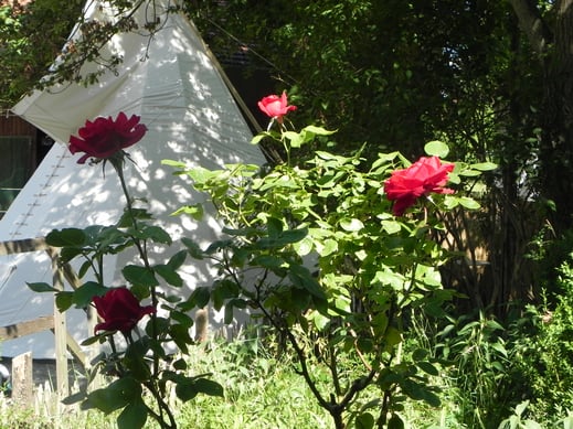...der geborgene Mittelpunkt des Hofes mit seinem Feuerplatz, dem „Freiluft-Speisezimmer“ und dem Tipi!